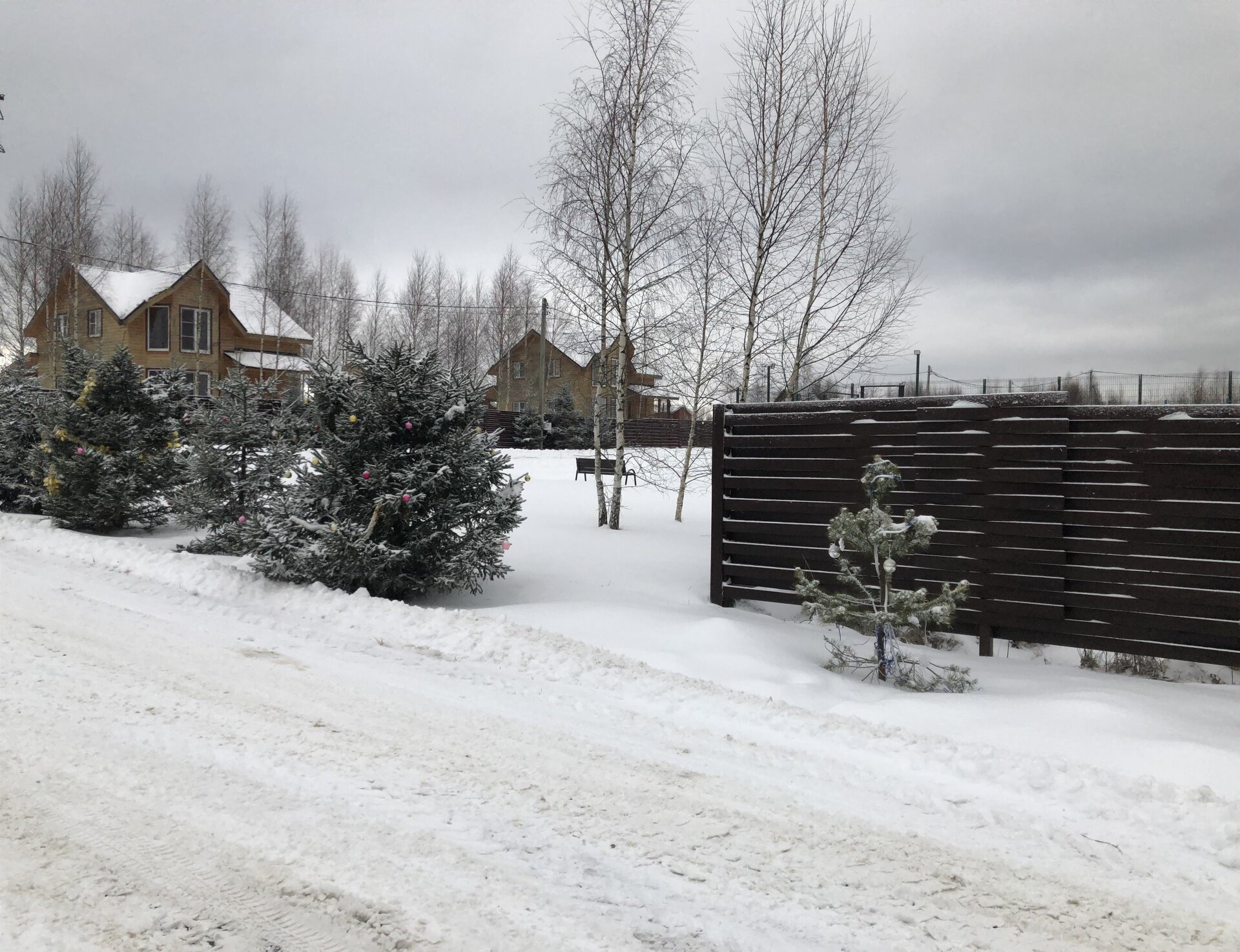 - Единый стиль заборов - деревянная плетенка.